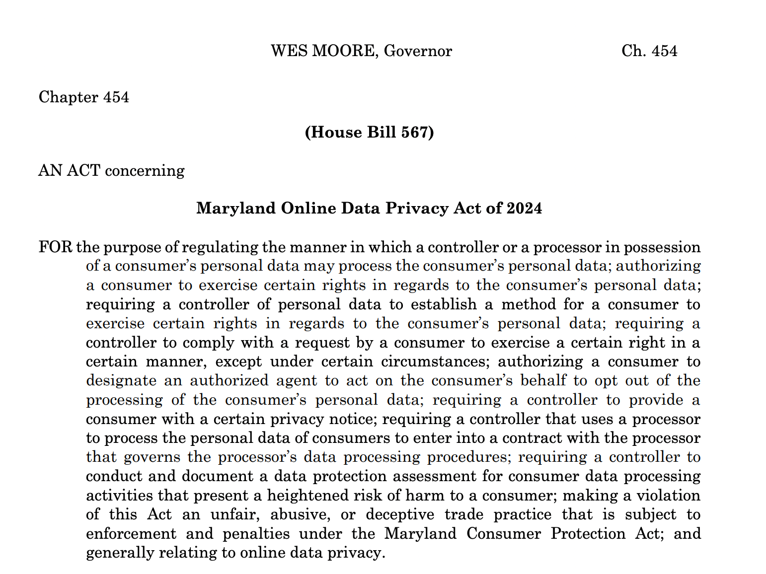 On May 9, 2024, Maryland Online Data Privacy Act (“MODPA” or the “Act”) was signed into law by Wes Moore, Governor of Maryland, thereby positioning Maryland as yet another U.S. state adopting a comprehensive data-privacy statute. (White & Case) The law will take effect on October 1, 2025. (Lowenstein Sandler)