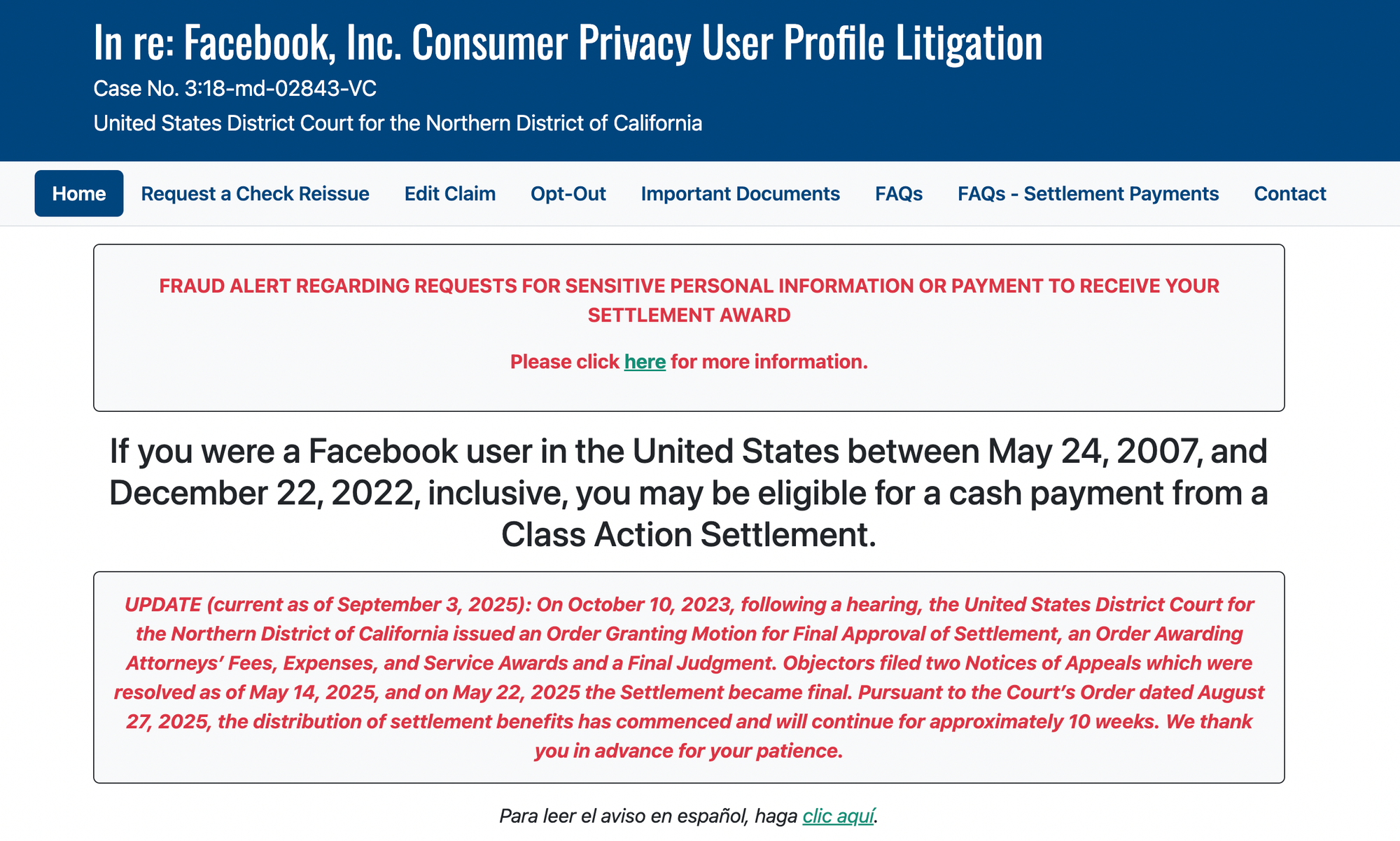 The Facebook User Privacy Settlement applied to anyone in the United States who held an active account between May 24, 2007, and December 22, 2022 - roughly fifteen years covering the full evolution of the Facebook platform.
